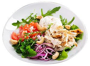 Organic kale and orange, muddled with carrots, dried cranberries, and almonds with green apples and citrus vinaigrette. Enhance your salad with chicken, shrimp and fish at an additional cost.